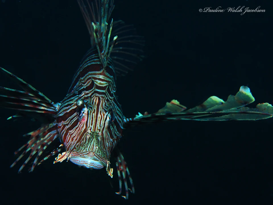 Indicó que el cuerpo del pez león se distingue por una serie de vistosas líneas blancas, marrones, violetas y rojas, y aletas pectorales y dorsales ampliamente desarrolladas a modo de abanico, lo cual le otorga un aspecto exótico y lo hace muy preciado como especie ornamental de acuarios.