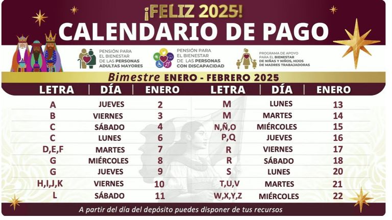 Este jueves 2 de enero, la titular de la Secretaría de Bienestar, Ariadna Montiel, dio a conocer el calendario de pagos de la Pensión para las Personas Adultas Mayores del primer bimestre enero-febrero de 2025. Durante la conferencia de prensa de la presidenta Claudia Sheinbaum confirmó que la entrega de los apoyos arranca hoy jueves 2 enero y concluirá el próximo 22 de este mes.
