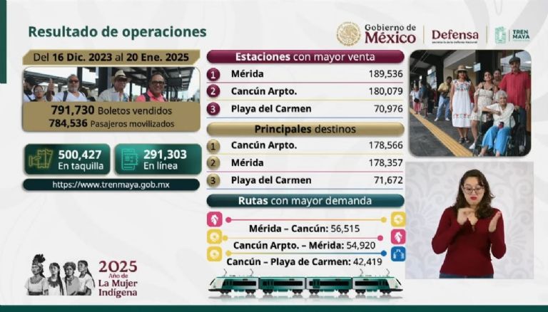 Resaltó que cuatro de cada 10 boleros ya se venden a través de la plataforma y de la aplicación del Tren Maya cambiando el modelo de venta, y la estaciones como mayor Movilidad son Mérida, Cancún y Playa del Carmen.