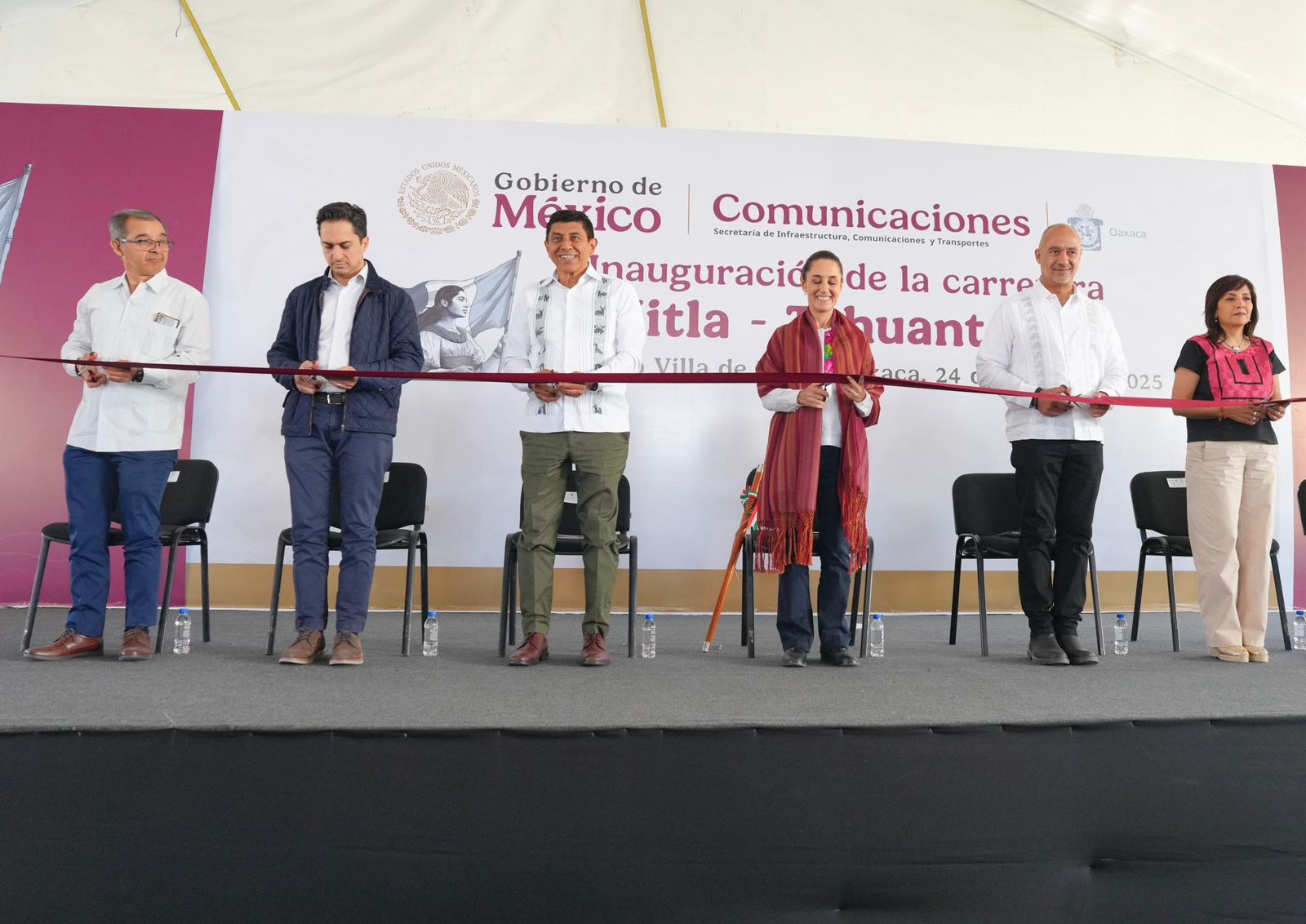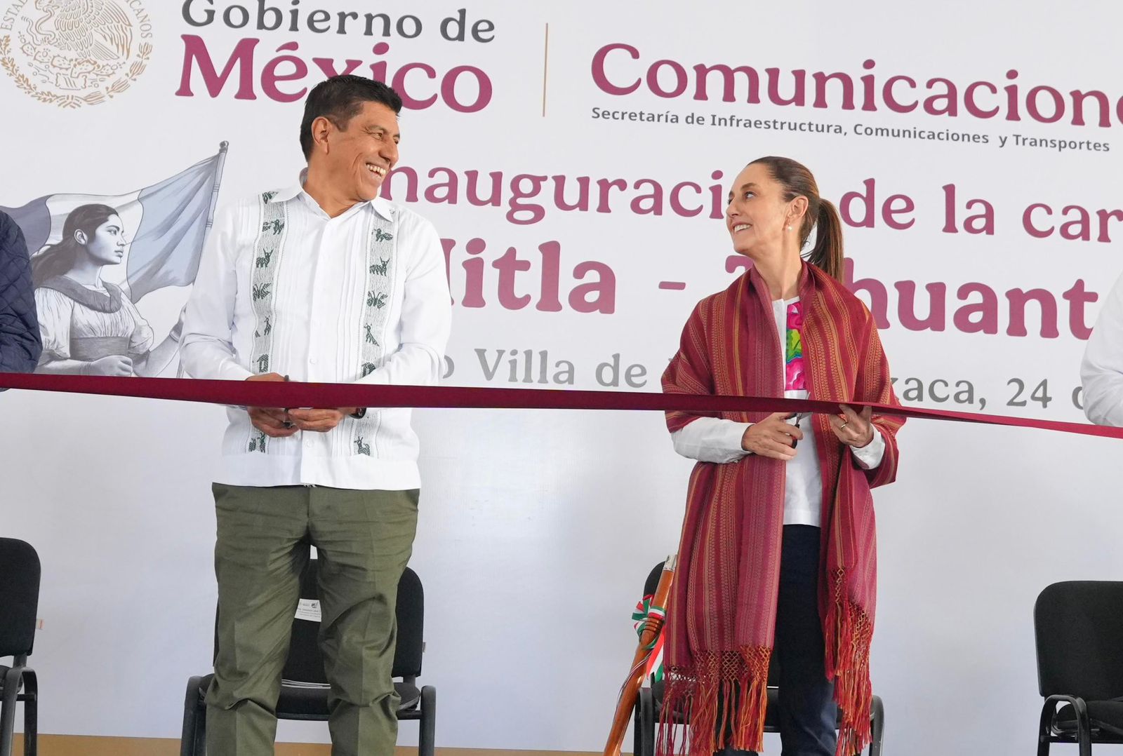 Oaxaca, 24 de Enero de 2025 .- La presidenta Claudia Sheinbaum, junto al gobernador de Oaxaca, Salomón Jara, inauguró la carretera Mitla-Tehuantepec, una obra de 169 kilómetros que, después de 23 años de espera, representa un avance significativo para la infraestructura vial del estado.