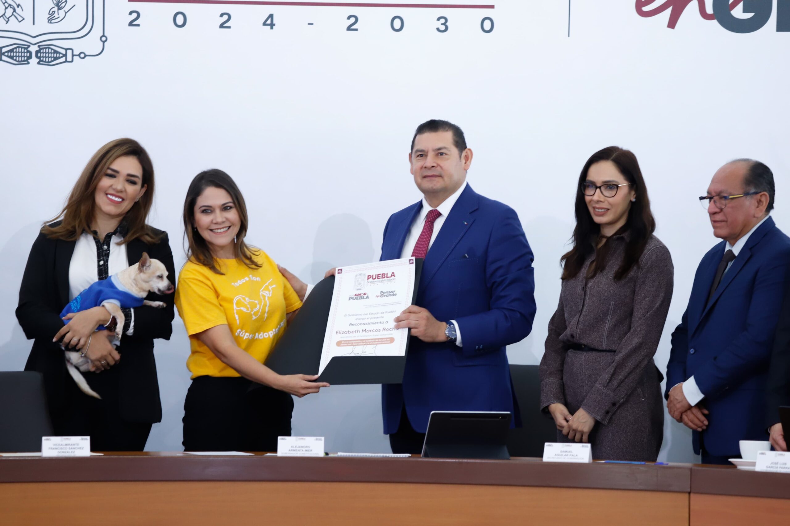 Durante la mañanera, el gobernador Alejandro Armenta entregó un reconocimiento a Elizabeth Marcos Rocha, rescatista de la Fundación Super Adoptable, por ser un ejemplo de buenas prácticas en el cuidado y resguardo de perros, gatos y otras especies.