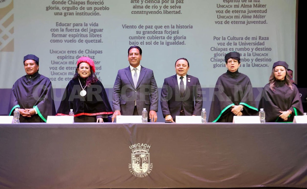 La ceremonia contó con la presencia del gobernador de Chiapas, Eduardo Ramírez Aguilar, quien destacó la coincidencia de que una mujer, la segunda en la historia de la Unicach, sea quien conduzca los destinos de dicha institución, en un contexto nacional en el que México es gobernado por la presidenta Claudia Sheinbaum Pardo.