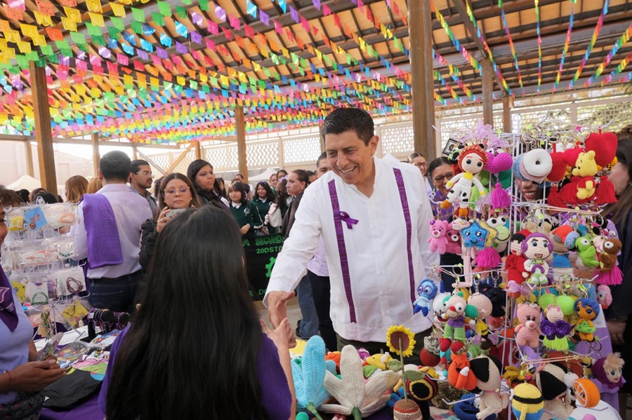 En este marco, el Gobernador Salomón Jara Cruz y la Presidenta Honoraria del DIF Oaxaca Irma Bolaños Quijano encabezaron la puesta en marcha de la Jornada “Mujeres y Resiliencia”, mediante el cual se brindarán servicios, actividades culturales y recreativas, y será un espacio para las mujeres artesanas y emprendedoras