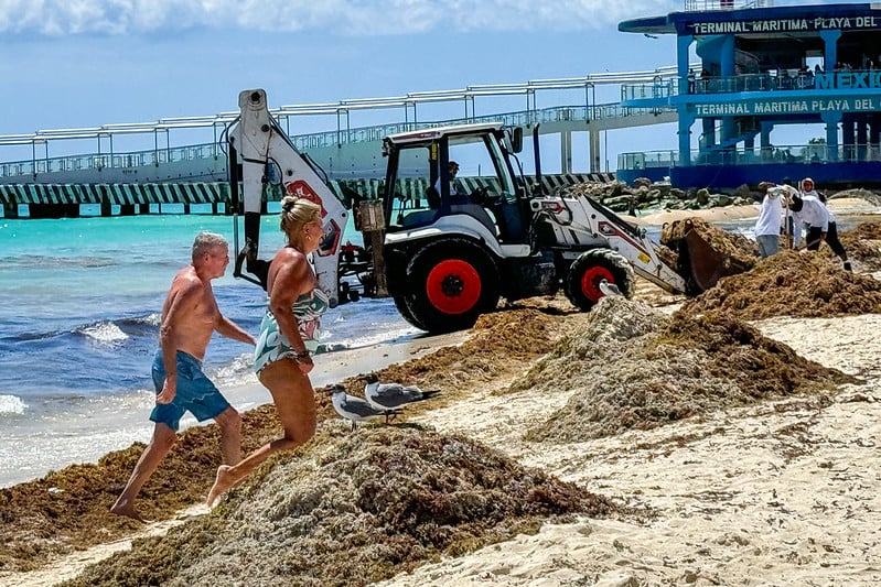 De momento los arribos de sargazo no han afectado severamente a la zona norte de Quintana Roo, se mantienen relativamente controlados y aunque con la surada de la semana pasada hubo arribos inesperados, hay labores de limpieza constantemente y siguen los monitoreos.