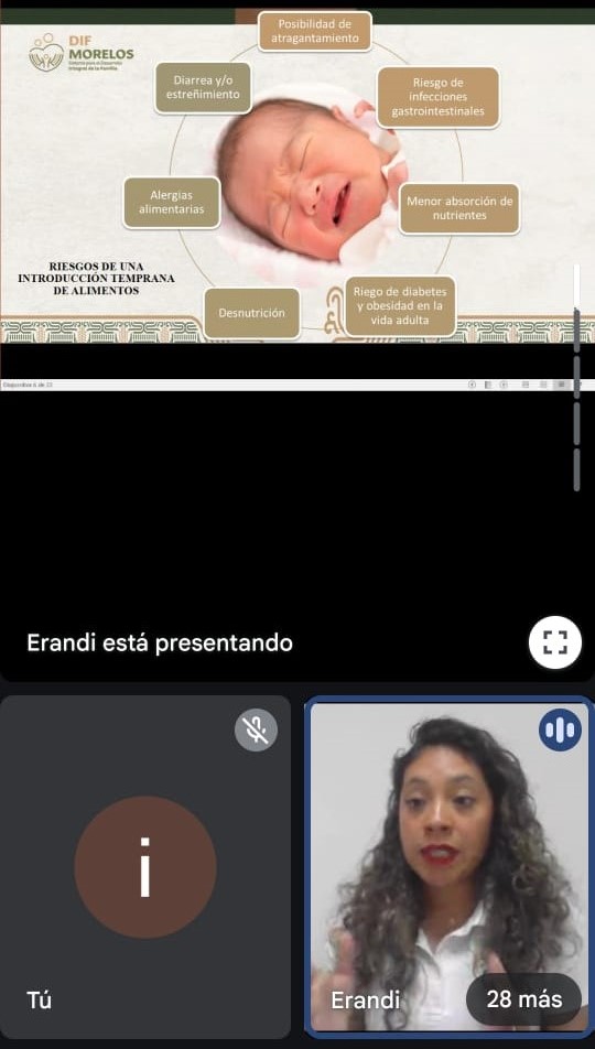 La actividad estuvo dirigida a servidoras públicas del Poder Ejecutivo, quienes recibieron información especializada de Tricia Erandi Galeana Morales, consejera en lactancia materna de la Dirección de Alimentación y Desarrollo Comunitario del Sistema para el Desarrollo Integral de la Familia del Estado de Morelos (SEDIF).