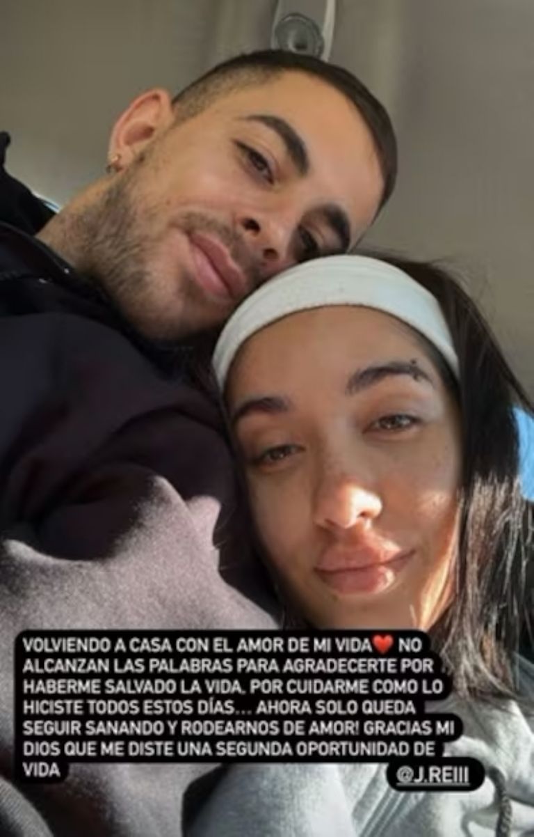 «Volviendo a casa con el amor de mi vida. No alcanzan las palabras para agradecerte por haberme salvado la vida, por cuidarme como lo hiciste todos estos días… Ahora solo queda seguir sanando y rodearnos de amor. Gracias mi Dios que me diste una segunda oportunidad de vida», expresó tras haber salido del hospital, según se puede leer en la historia de Instagram.