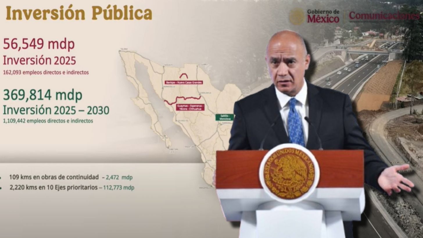 Una inversión pública de 369 mil 814 millones de pesos será destinada para la modernización y construcción de infraestructura carretera, entre 2025 y 2030.