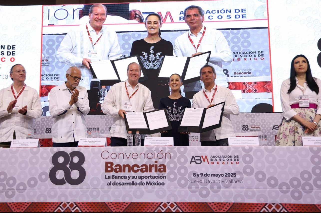 La presidenta de México, Claudia Sheinbaum, participó en la 88ª Convención Bancaria en Nuevo Vallarta, Nayarit, donde celebró un acuerdo alcanzado entre su gobierno y la Asociación de Bancos de México (ABM) para aumentar anualmente el financiamiento a las micro, pequeñas y medianas empresas (Mipymes) en 3.5 por ciento hasta el año 2030.