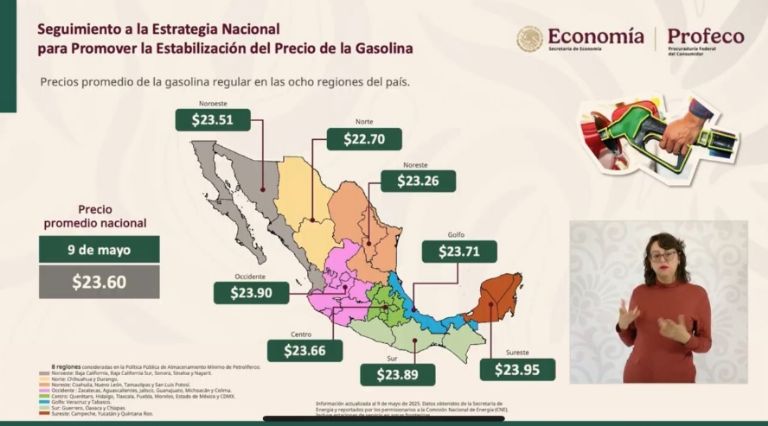 “Destacando en la región Norte en 22.70, y se acuerdan que en el sureste estaba en 24, ahora disminuyó en 23.95, debido al esfuerzo de Pemex y de todos los actores de la zona, entonces son buenas noticias para las personas consumidoras de gasolina”, señaló.