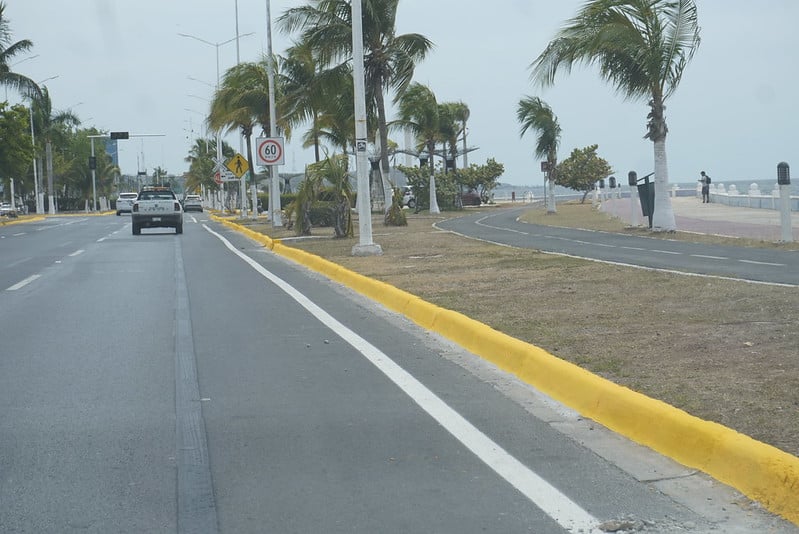 El pasado viernes, fueron elementos de la Sedena quienes dedicaron la mañana a pintar el embanquetado de al menos 500 metros lineales del lado mar, debido a que dicha zona será parte del trayecto del Tren Ligero, transporte que conectará a la ciudad con la Estación Tren Maya San Francisco Campeche. En esa área en específico, las dimensiones de la cinta asfáltica para rodamiento vehicular es más angosta que el resto del malecón.