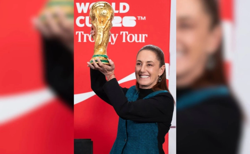 La presidenta Claudia Sheinbaum Pardo presentó ayer al final de su conferencia matutina, el trofeo de la Copa Mundial de