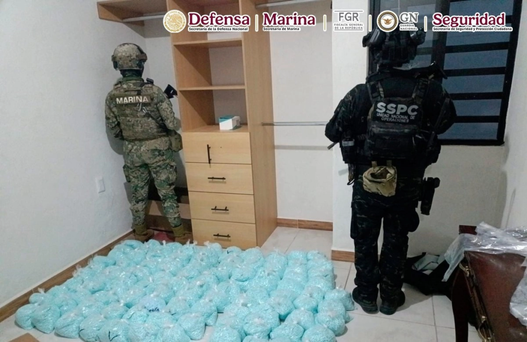 Ciudad de México. Autoridades federales aseguraron alrededor de 270 kilogramos de fentanilo —equivalentes a aproximadamente 14 millones de dosis— y