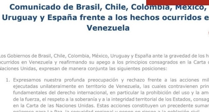 Bogotá. Brasil, Chile, Colombia, México, Uruguay y España rechazaron este domingo «cualquier intento de control» sobre Venezuela, después de que