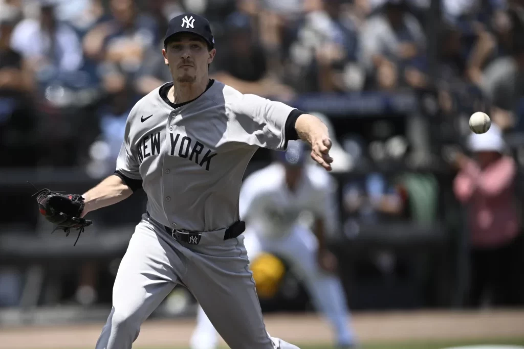 Florida, 21 de abril de 2025.- El novato Chandler Simpson conectó un rodado en el hueco entre primera y segunda.