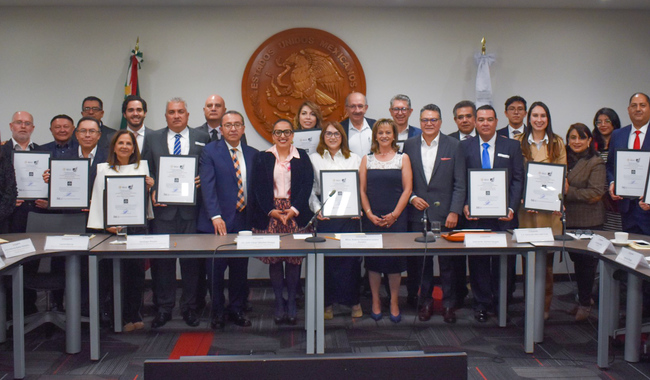Durante la entrega del distintivo Hecho en México a la Asociación Nacional de Transporte Privado (ANTP) y a algunos de sus miembros,