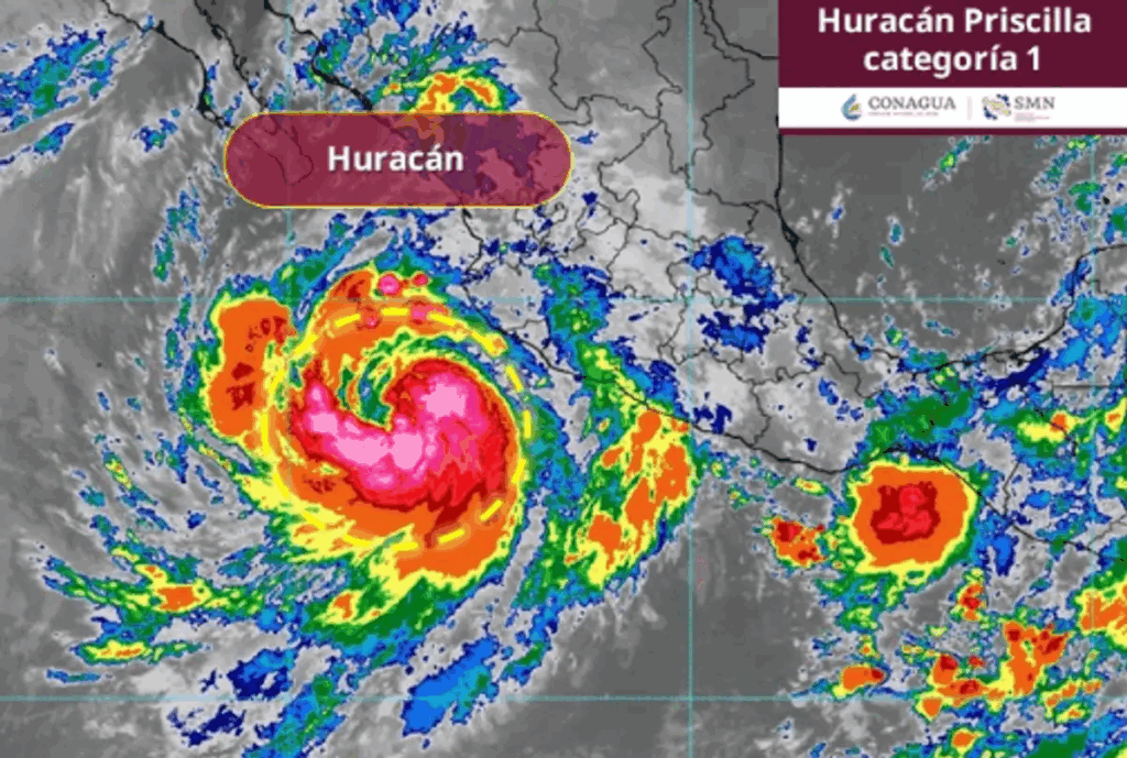 Ciudad de México. Las bandas nubosas del huracán Priscilla, categoría 1, originarán este lunes lluvias intensas en Colima, el sur