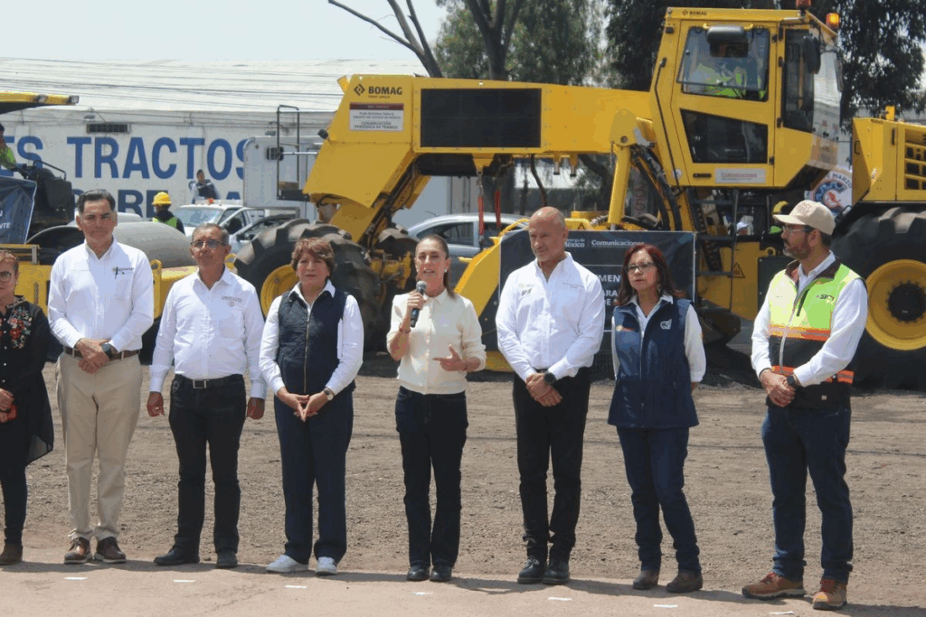Acolman, Méx. Al dar el banderazo de inicio de los trabajos con los nuevos trenes de repavimentación como parte del